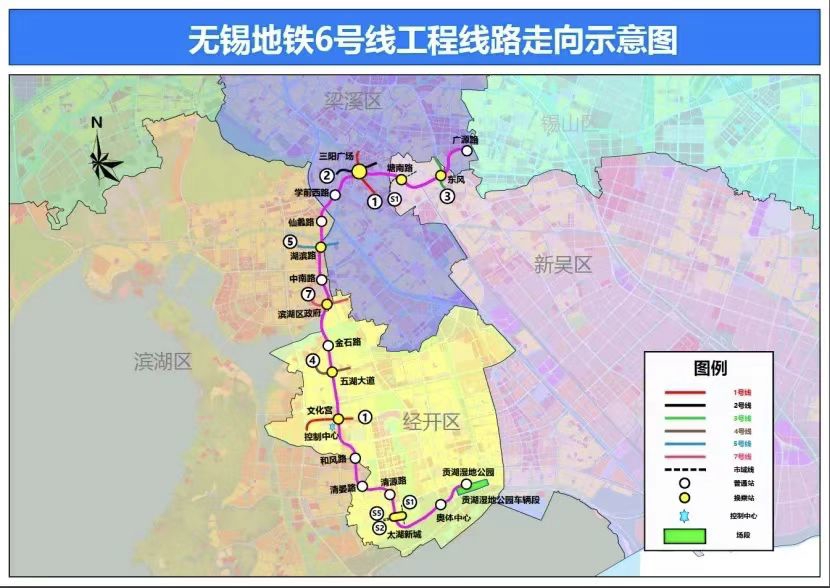 无锡地铁6号线整体呈南北走向,全长24.26公里,途经无锡经开区、滨湖区、梁溪区及新吴区,共设置18座车站。其中,换乘站有8个,被誉为“换乘王”,和既有线1、2、3、4号线均有交汇,同时和在建的5号线、S2线有换乘,还可在太湖新城站实现6号线、S2线、远期S5线/S1线四线换乘。项目建成后,将释放轨道交通线网的运人潜力和服务能级,有力支撑功能区建设,为无锡科创带、经济轴、文商圈的发展注入新动力。